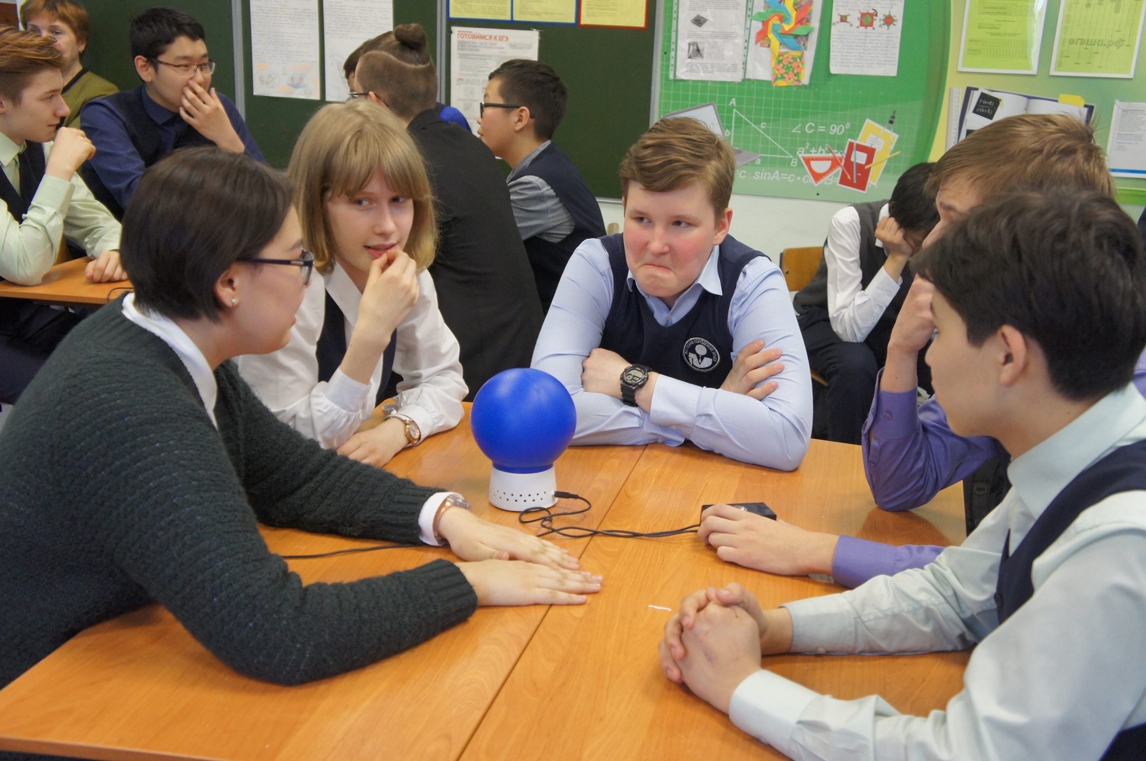 Восьмиклассники объединились в пять команд: «Уранхай», «Крутая шестерка», «Мамонтята», «Оптимисты» и «Позитив». Каждая команда поиграла по 5 раундов. В каждом раунде – по 5 вопросов. В случае, если команды набирали равное количество баллов, разыгрывался дополнительный вопрос. Ребята продемонстрировали глубокие знания. Большинство вопросов щелкались как орешки. Тяжелее всего дались вопросы по географии, административно-территориальному делению республики, порядку установки флагов и т.д.