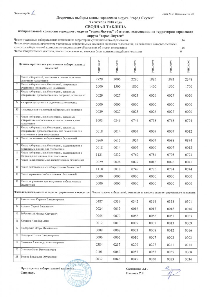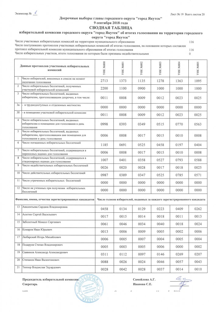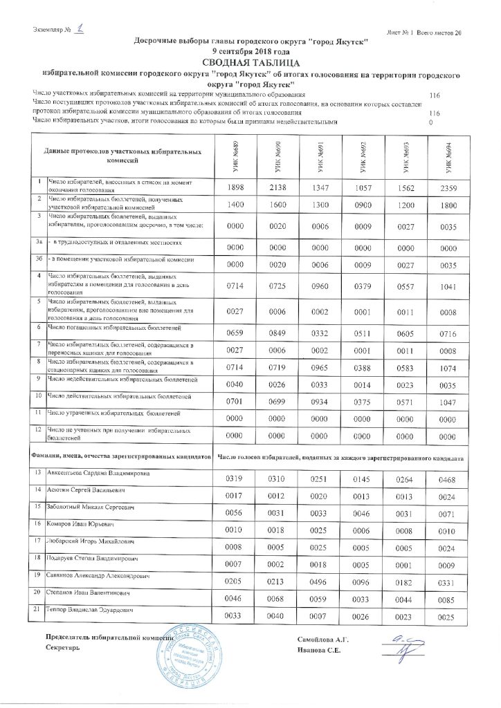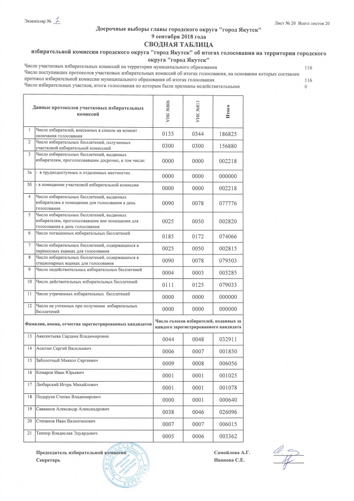 Окончательные итоги по выборам главы городского округа «город Якутск»