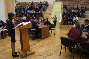 В начале брейнг-ринга ведущая Тарских Евгения Александровна ознакомила ребят с правилами игры, представила жюри (председатель ЯГТИК Самойлова А.Г., представитель ЯГСХА). Брейн-ринг состоял из 10 раундов, в каждом раунде надо было набрать максимальное количество баллов, чтобы выйти в финал. Таким образом, одна команда должна была встретиться и играть со всеми командами. Вопросы брейн-ринга состояли из тем: Конституция РФ, избирательное право, государственность, история РФ.