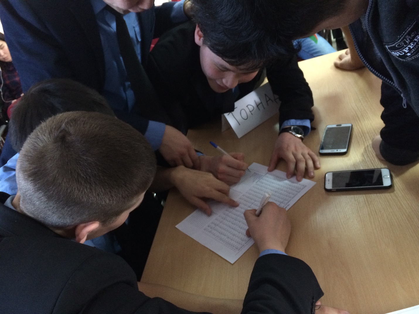 Следующее задание – за 3 минуты решить сканворд далось ребятам не очень легко. Из 35 зашифрованных слов на тему выборы, командам «Модун» и «Крушители» удалось найти по 25 и 23 слова соответственно.