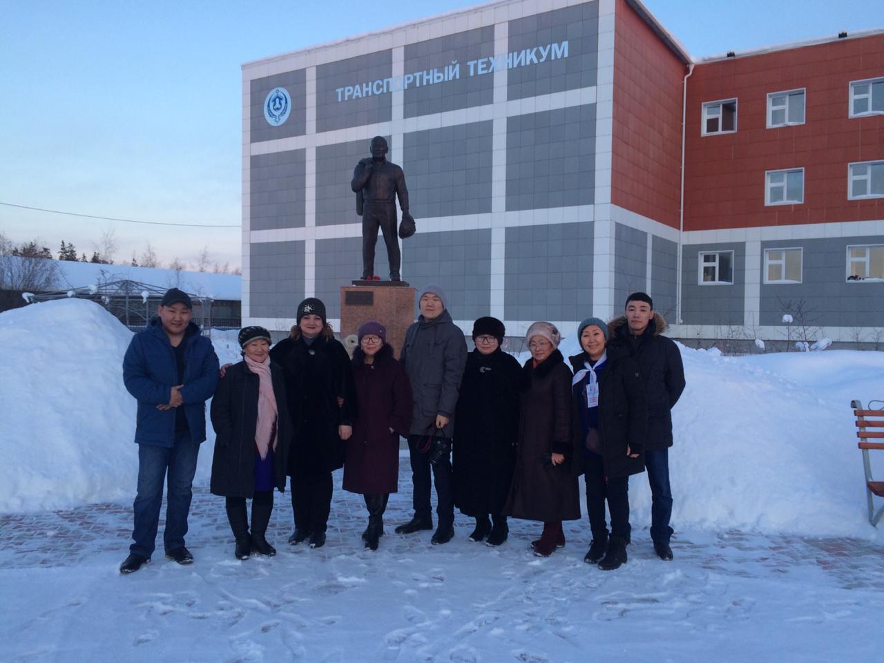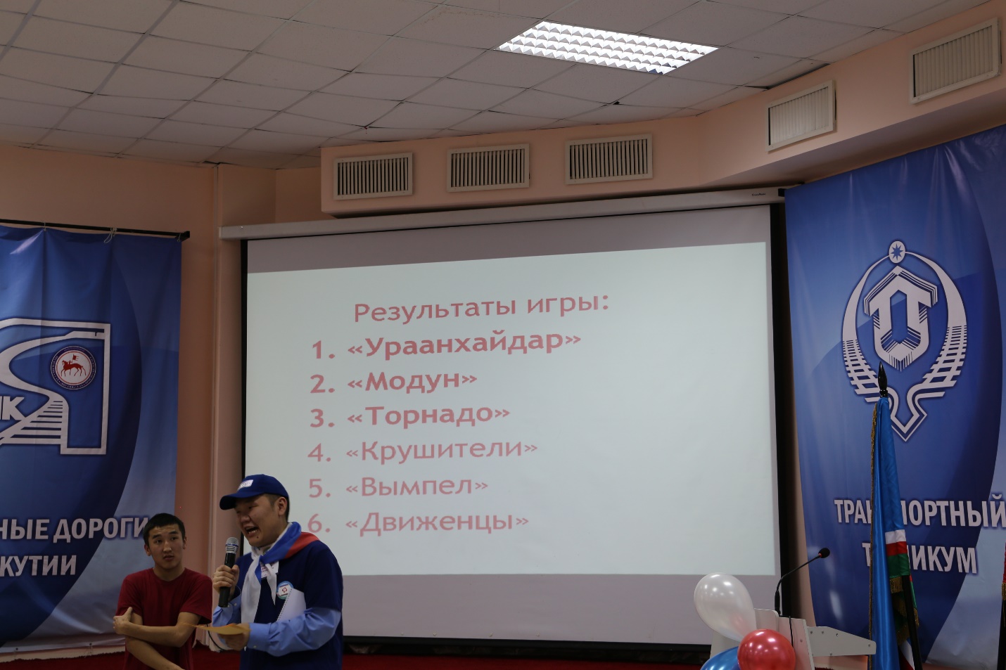 Организаторов игры на крыльце встретил директор техникума Петров Василий Николаевич. Он провел краткую экскурсию по техникуму. Транспортный техникум был создан в 2014 году, в настоящее время в нем обучаются 268 студентов из 21 улуса республики и г. Якутска.