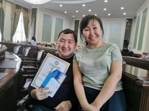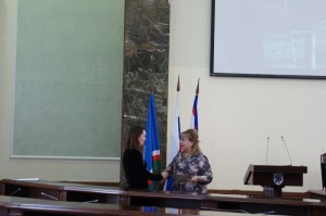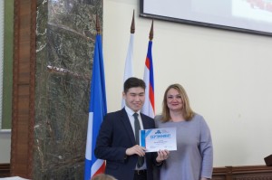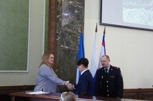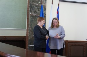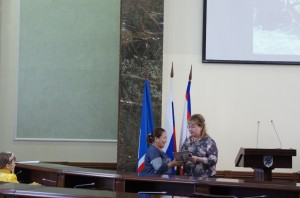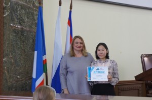 Самойлова А.Г. вручила сертификаты Центральной избирательной комиссии РФ победителям регионального этапа интернет-викторины «Избирательное право и процесс» Слепцовой Валерии и Сыдыкову Нурсултану.