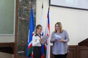 Самойлова А.Г. вручила грамоты отличившимся в избирательную кампанию осенью 2018 г. членам участковых избирательных комиссий города Якутска.