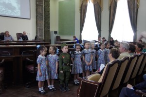 Открыли акцию дети из старшей группы «Огонек» детского сада №16 «Золотинка» (музыкальный руководитель Дьяконова Ирина Ивановна). Они исполнили песню «Катюша».