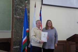 Конакова Ирина Николаевна поздравила всех присутствующих с наступающим праздником, Днем Победы и вручила от имени Центральной избирательной комиссии Республики Саха (Якутия) грамоты и благодарности председателям и членам участковых избирательных комиссий.