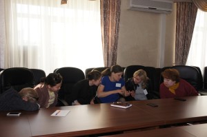Ведущий, Самойлова А.Г., объяснила собравшимся правила игры. Разбила участников на две команды, по 6 человек в каждой. Команды придумали себе название и выбрали капитана. Команда «Выборы» во главе с капитаном Бабенко Анна и команда «Участок» во главе с капитаном Назаровой Оксаной заняли свои места и игра началась.