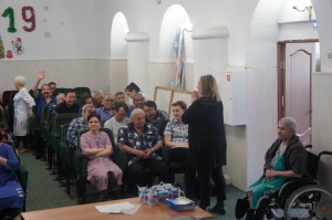 В начале встречи, которая состоялась в актовом зале дома – интерната, Алла Георгиевна проинформировала собравшихся какой праздник россияне отмечают 12 июня. Престарелых и инвалидов интересовало как праздник появился, какие мероприятия проводятся в этот день и почему он празднуется именно 12 июня, какое значение имеет празднование Дня России для граждан нашей страны.