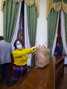После вскрытия ящика для голосования были подведены итоги голосования. Заместителем председателя ЯГТИК большинством голосов избран Гриценко В.И. (стаж работы в ЯГТИК 20 лет, юрист). Секретарем -Иванова С.Е. (стаж работы в ЯГТИК 9 лет, юрист).