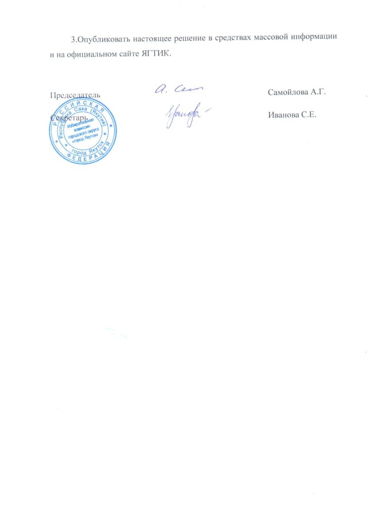 Главная → Новости → Решение о результатах рассмотрения агитационного видеоматериала кандидата на должность главы городского округа "город Якутск" Мярикянова М.М.
