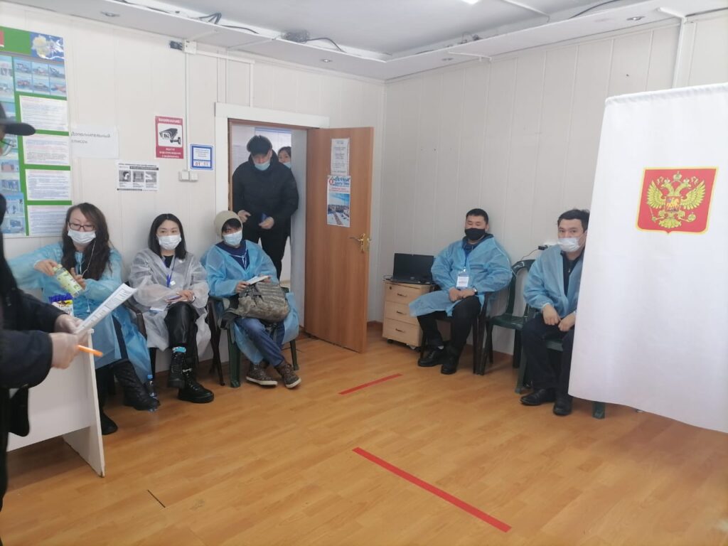 Все члены участковой избирательной комиссии работают в халатах, масках и перчатках. На подписывание и голосование каждому избирателю выдается ручка. Голосовать можно только лично, при предъявлении паспорта.