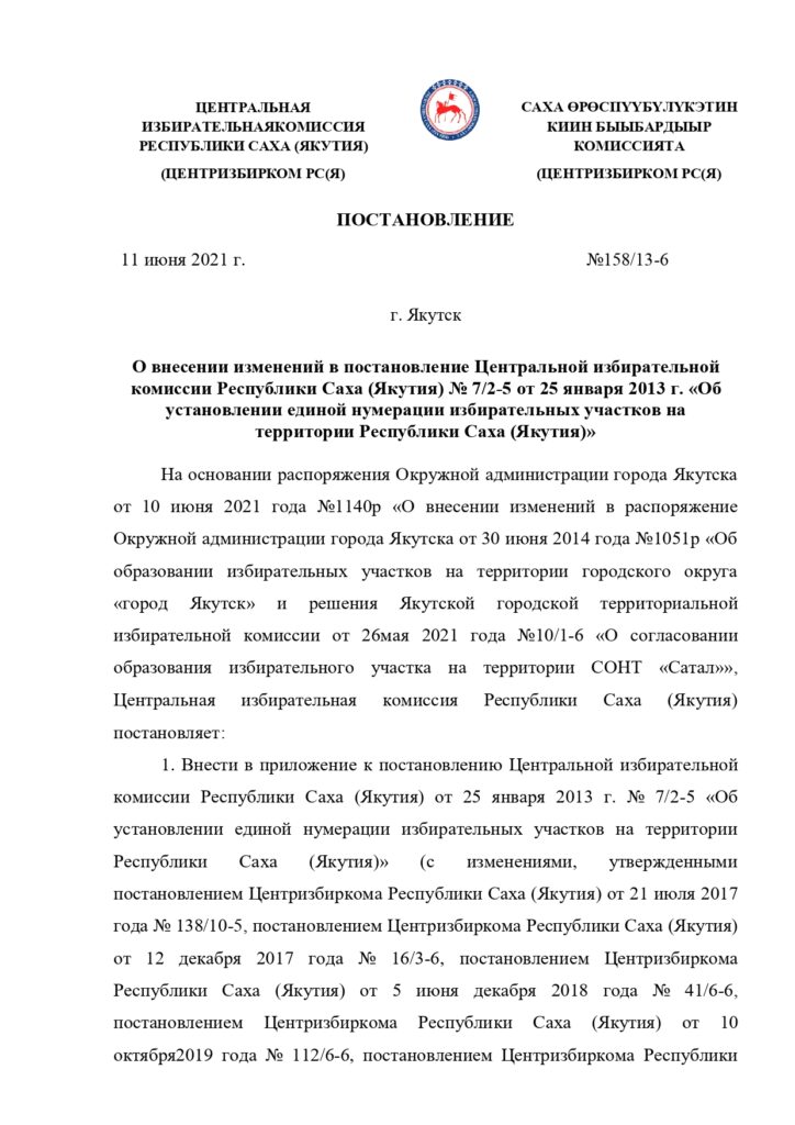 Главная → Новости → Об образовании нового избирательного участка №810 на территории СОНТ «Сатал». Центр участка – администрация СОНТ «Сатал». Адрес: город Якутск, СОНТ «Сатал», 1 Б.