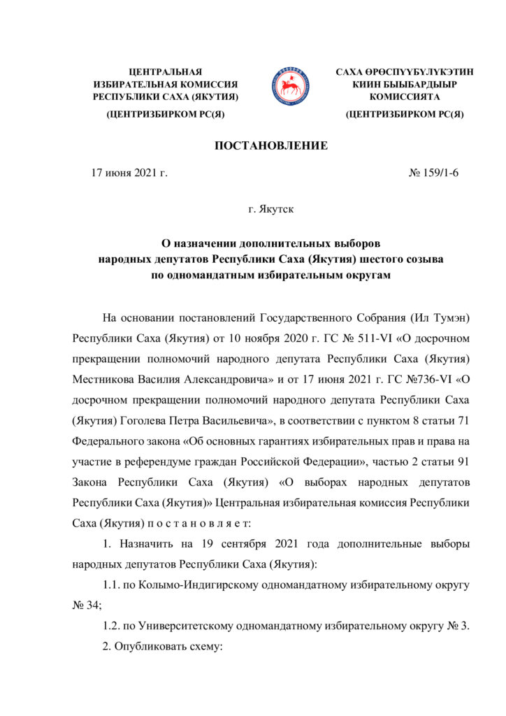 Главная → Новости → О назначении дополнительных выборов народного депутата Республики Саха (Якутия) шестого созыва по Университетскому одномандатному избирательному округу № 3
