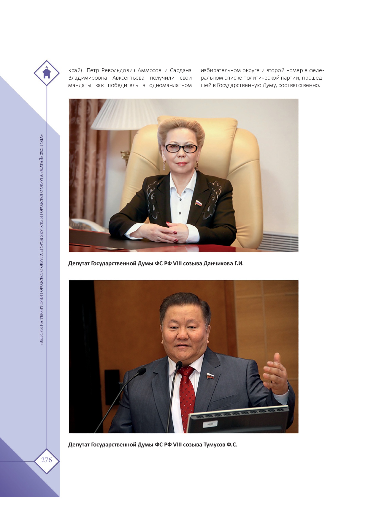 VI. Анализ результатов голосования на выборах депутатов Государственной Думы Феде- рального Собрания Российской Федерации восьмого созыва и дополнительных выборов народного депутата Государственного Собрания (Ил Тумэн) Республики Саха (Якутия) шесто- го созыва по Университетскому одномандатному избирательному округу № 3………………272