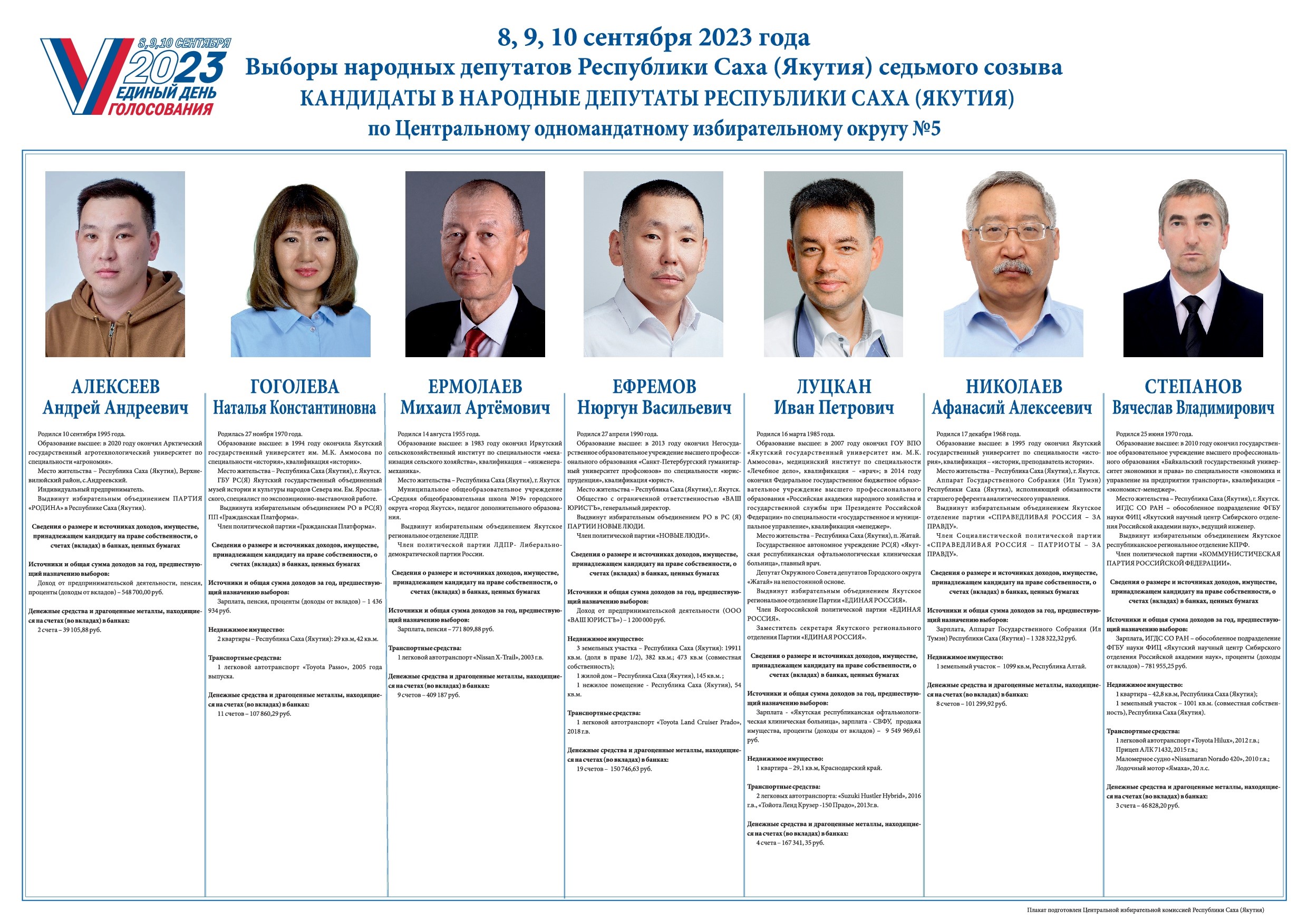 | 4 | ЕФРЕМОВ НЮРГУН ВАСИЛЬЕВИЧ, дата рождения — 27 апреля 1990 года, уровень образования — высшее, основное место работы или службы, занимаемая должность, род занятий — ООО «ВАШ ЮРИСТЪ», генеральный директор, место жительства — Республика Саха (Якутия), город Якутск | член Политической партии «НОВЫЕ ЛЮДИ» | РО в РС (Я) ПАРТИИ НОВЫЕ ЛЮДИ | 08.07.2023 | п.п.3-7 ст.35.1 ФЗ «Об основных гарантиях…» № 67-ФЗ | зарег.