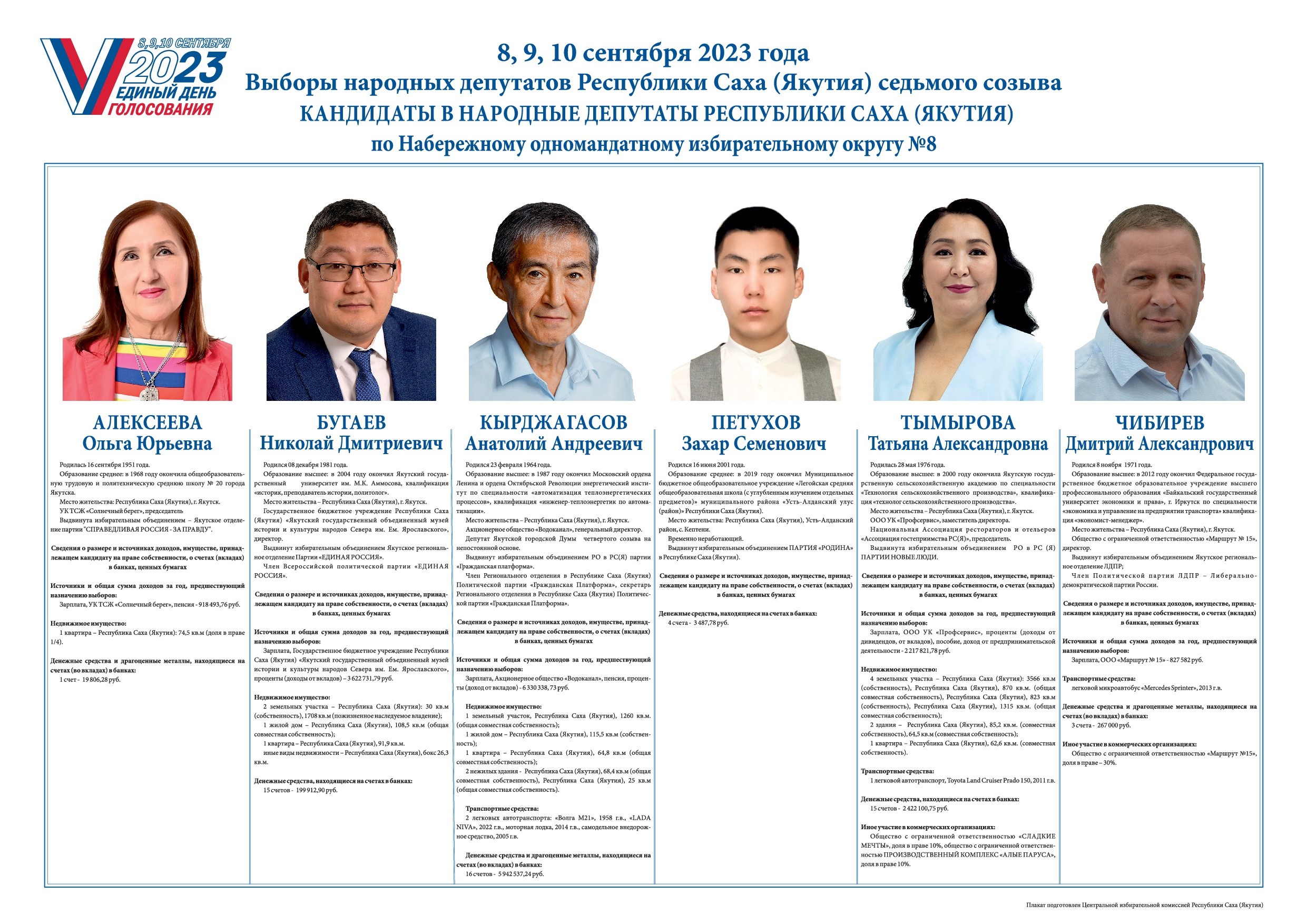 | 49 | ЧИБИРЕВ ДМИТРИЙ АЛЕКСАНДРОВИЧ, дата рождения — 8 ноября 1971 года, уровень образования — высшее, основное место работы или службы, занимаемая должность, род занятий — ООО «Маршрут №15», директор, место жительства — Республика Саха (Якутия), город Якутск | член Политической партии ЛДПР — Либерально-демократической партии России» | Якутское региональное отделение ЛДПР | 05.07.2023 | п.п.3-7 ст.35.1 ФЗ «Об основных гарантиях…» № 67-ФЗ | зарег.