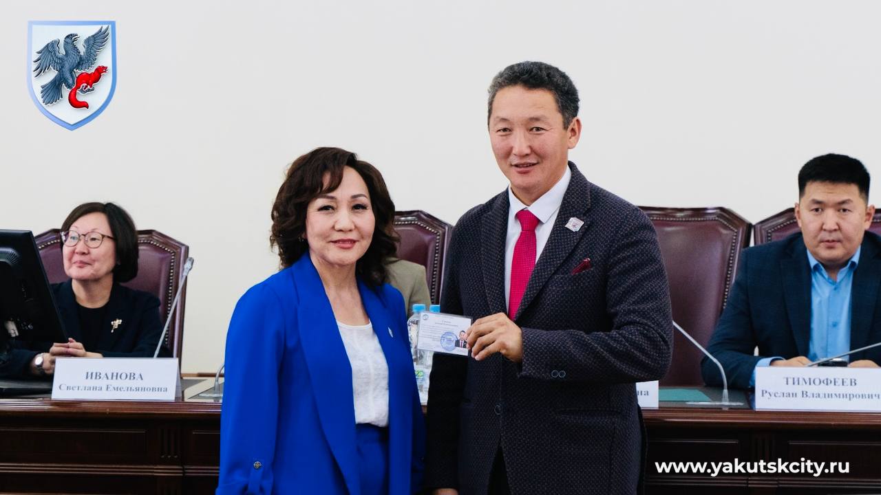Торжественная церемония вручения удостоверений депутатов состоялась на итоговом заседании Якутской городской территориальной избирательной комиссии 22 сентября в Окружной администрации города Якутска.