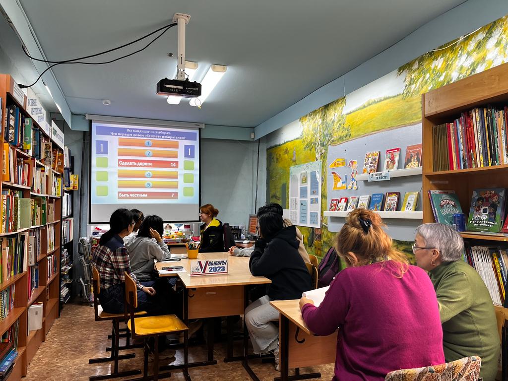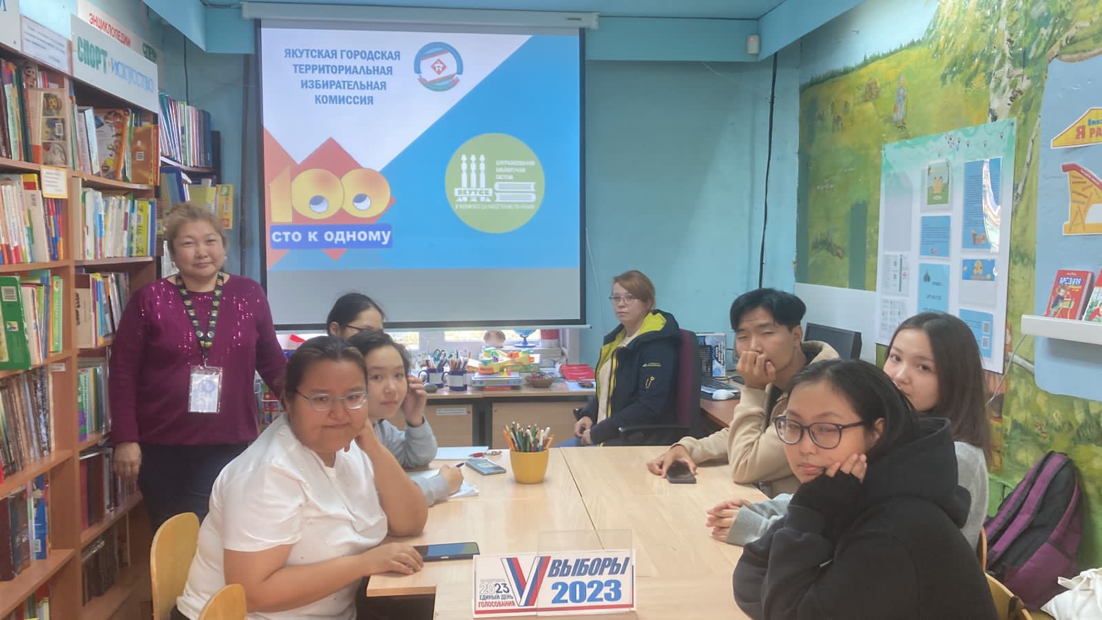 Якутская городская территориальная избирательная комиссия совместно с Детской библиотекой — филиалом N15 «Моя библиотека» МБУ «ЦБС» ГО «Город Якутск» провели для студентов второго курса кафедры Библиотечно-информационной деятельности и гуманитарных дисциплин Арктического государственного института культуры и искусств мероприятие, приуроченное к избирательной кампании 10 сентября 2023 года.
