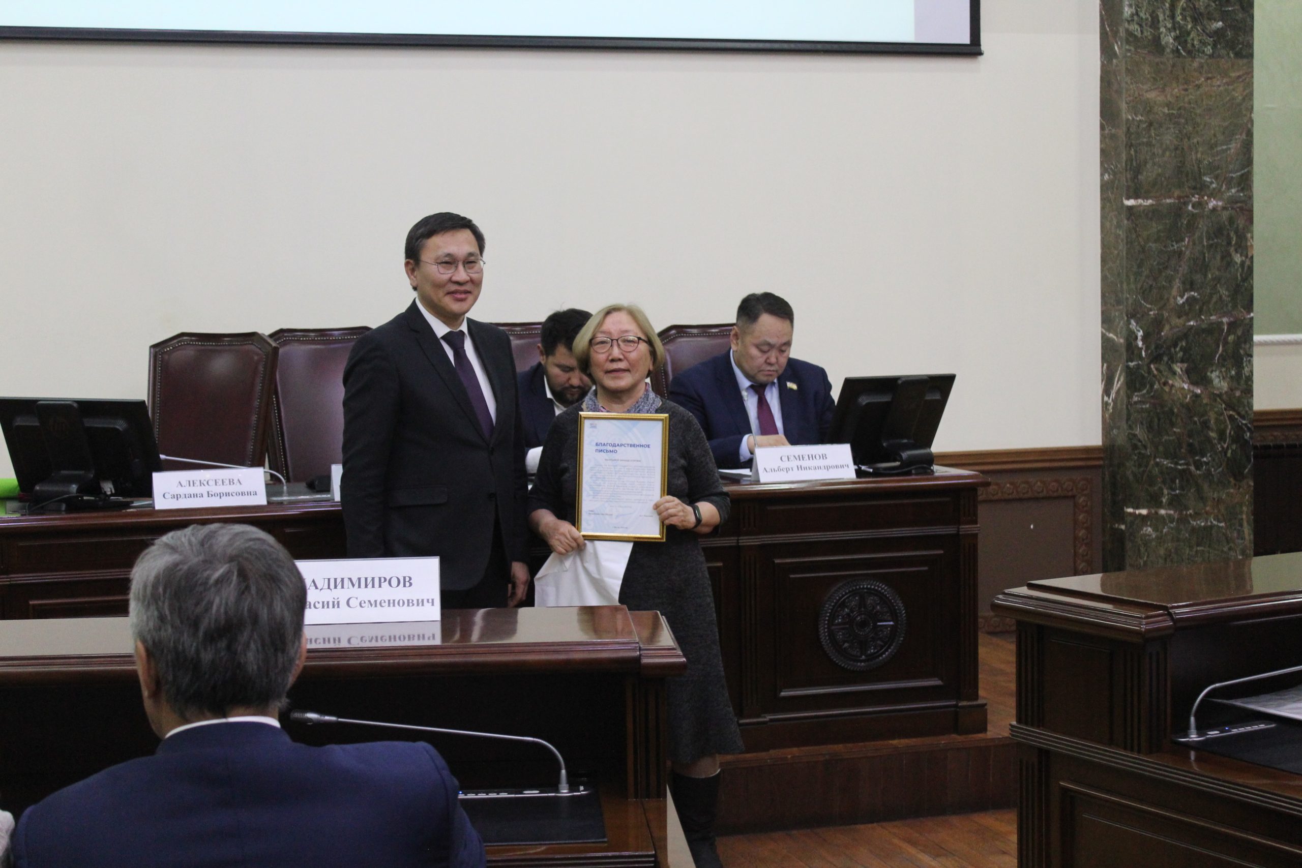 Также еще раз хочу поблагодарить мэра городского округа город Якутск Евгения Николаевича Григорьева и его большую команду, Евгения Николаевича Федорова и команду ЦИК, правоохранительные и надзорные органы, все организации, которые представили помещения для избирательных участков, СМИ, которые освещали данный электоральный цикл, всех тех, кто помог нам провести, такие масштабные выборы. Благодаря нашей слаженной работе выборы прошли на высоком организационном уровне, что было отмечено всеми участниками избирательного процесса.