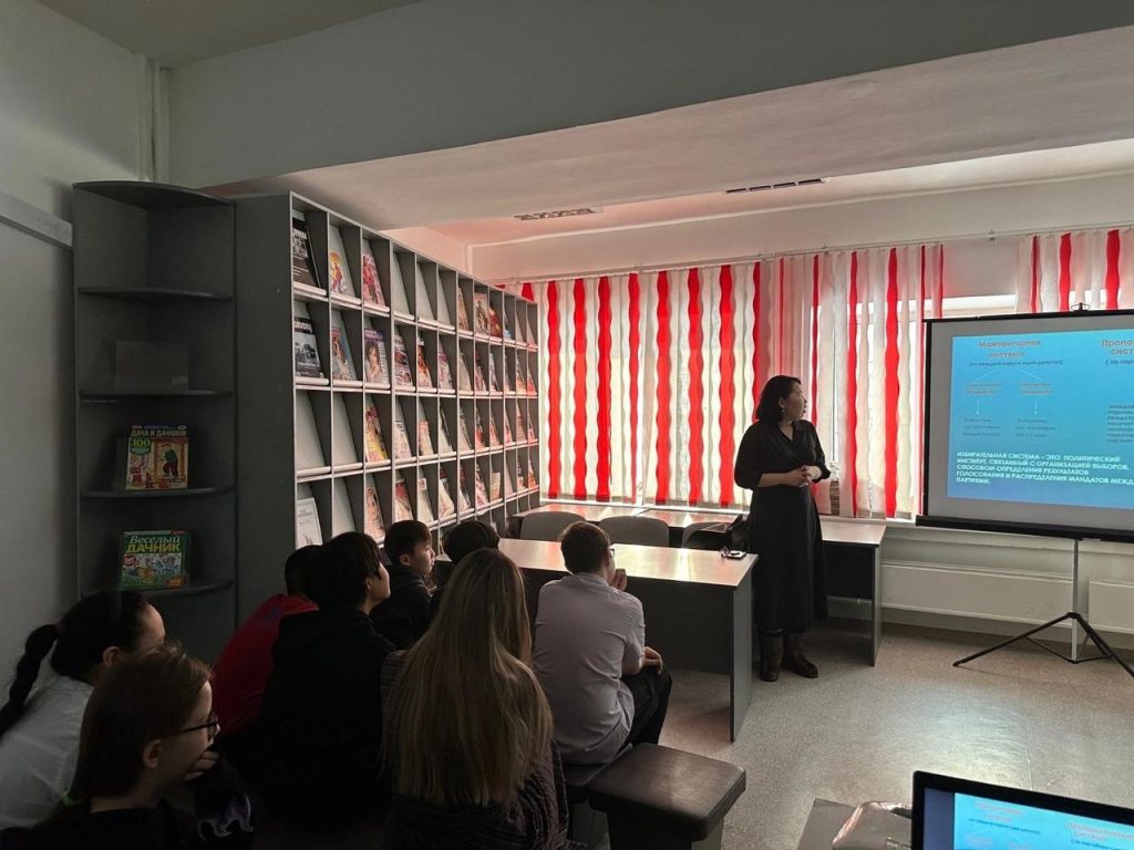 15 февраля 2024 г. Молодежная избирательная комиссия г. Якутска в Краевой библиотеке им. В.Г. Белинского в рамках Дня молодого избирателя Российской Федерации провела для школьников Средней общеобразовательной школы №9 библиотечный урок «Мы молодые — нам выбирать».