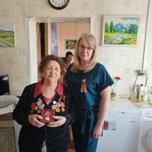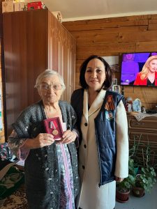 Особенно трогательным моментом стало вручение награды ветерану, проживающему в другом городе — Муроме. Председатель Якутской городской ТИК Сардана Алексеева по видеосвязи пообщалась с Ниной Тихоновной Шестаковой, поздравила её с праздником Победы, рассказала о её награде и передала юбилейный знак родственникам. Нина Тихоновна была очень тронута вниманием и душевно поблагодарила руководство республики и города Якутска за память и заботу даже на расстоянии.