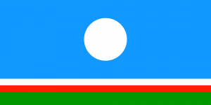 «Государственный флаг Республики Саха (Якутия) представляет собой прямоугольное полотнище, состоящее из четырёх разновеликих горизонтальных полос соответственно голубого, белого, красного и зелёного цветов. Соотношение ширины полос к ширине флага: голубой полосы — 3/4 ширины флага, белой полосы — 1/16 ширины флага, красной полосы — 1/16 ширины флага, зелёной полосы — 1/8 ширины флага. На середине голубой полосы расположен круг белого цвета. Диаметр круга составляет 2/5 ширины флага. Отношение ширины флага к его длине — 1:2».