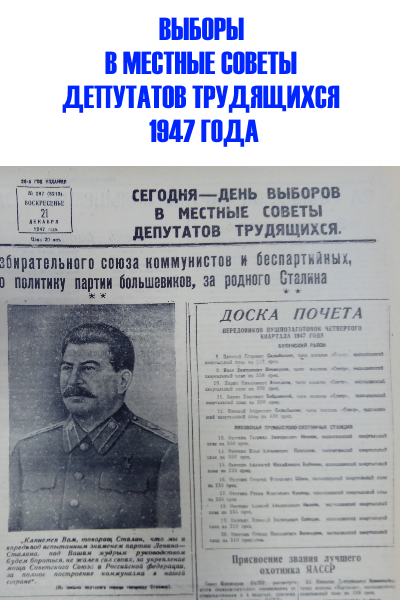 «10 февраля 1946 года в день выборов в Верховный Совет СССР мы, воины Армии-победительницы, отдадим свои голоса лучшим представителям нашего народа — кандидатам сталинского блока коммунистов и беспартийных»