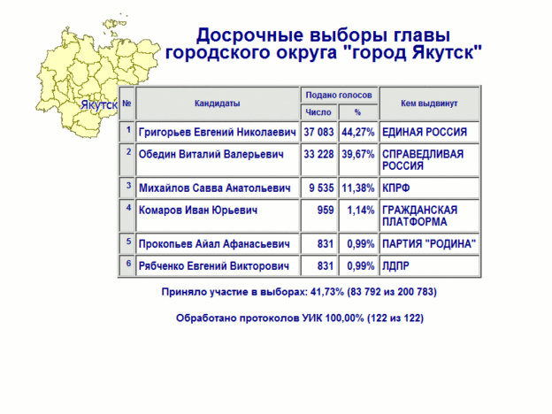 Решение о результатах досрочных выборов главы городского округа «город Якутск»