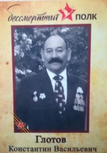 Мой прадедушка Иван Константинович 1924 года рождения, был призван на войну в 1942 году, ему было 18 лет. Он охранял восточную границу, был связистом. В 1945 году в августе перешел границу Манчжурии, дошел до Японии, перейдя пешком горы Хинганя через Северную Корею, вернулся на Родину. Ему было всего 21 год. В наступительном марше проявил образцы физической выносливости, умело и бесперебойно обеспечивал связью на своем направлении штаб полка с батальоном. Своей отличной учебой, работой и дисциплинированностью увлекал своих товарищей на выполнение боевых задач. Был награжден Орденом Отечественной войны 2 степени, Медалью «За боевые заслуги».
