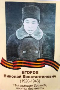 Николай Константинович 1920 года рождения. Николай вместе с братом Федотом был призван на войну в 1942 году. В Молотовской области их распределили в разные части. От него не было ни письма, ни весточки. Его посчитали без вести пропавшим и утонувшим на озере Ильмень. В этом озере во время перехода от бомбежек утонуло много наших якутских солдат. Николай даже не успел влюбиться.