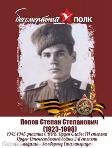 Из наградного листа №27/н от 27.07.1944 3 гв. танковым корпусом 5 гв. Танковой армии: «Участвуя в боях за г.Борисов тов.Попов находясь с рацией сутки под обстрелом артиллерии противника, передавал цели на огневую позицию. Дважды рация выходила из строя и дважды т.Попов вводил её в строй за 10 минут. В боях за г.Вильнюс от бомбежки вражеской авиации загорелась машина где были две рации отделения Попова. т.Попов под пулеметным огнем «Мессершмидтов» из пламени спас две рации и через 30 минут они были в действии. т.Попов обеспечивал своего командира связью за время боев бесперебойно. т.Попов достоин правительственной награды орден «Слава III ст.»
