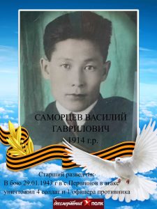 «Наш дед был призван в на войну в июле 1942 года, участвовал в таких кровопролитных боях как битва под Ржевом, взятие Кенигсберга, награжден двумя медалями «За отвагу». Вернулся с войны, вырастил шестерых детей, в том числе мою маму, передовик производства, заслуженный работник ЯАССР. У нас видеозапись, где он делится своими воспоминаниями о войне, я даже не нашла в себе силы посмотреть её, а люди были непосредственными участниками. Спасибо деду за победу! Помним! Гордимся!»