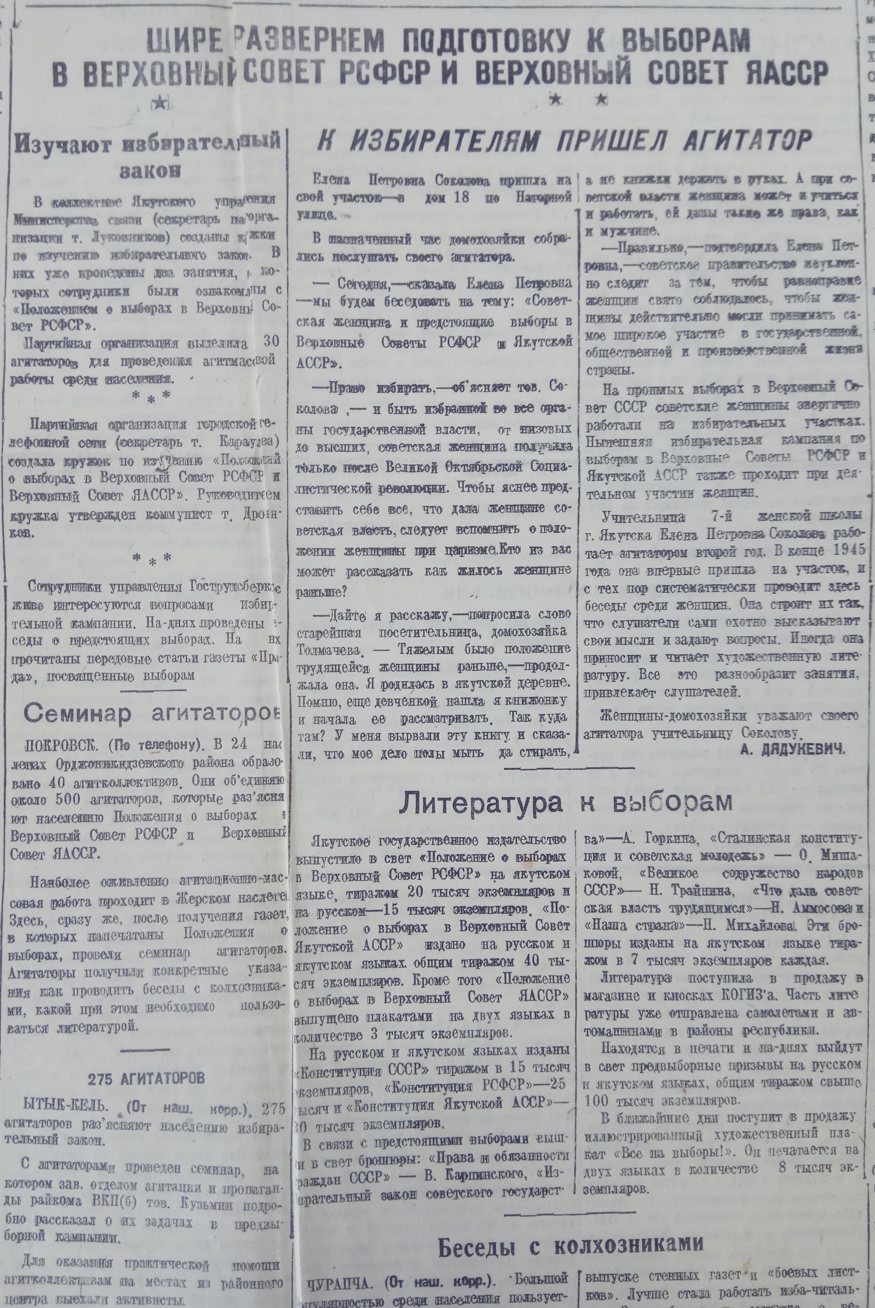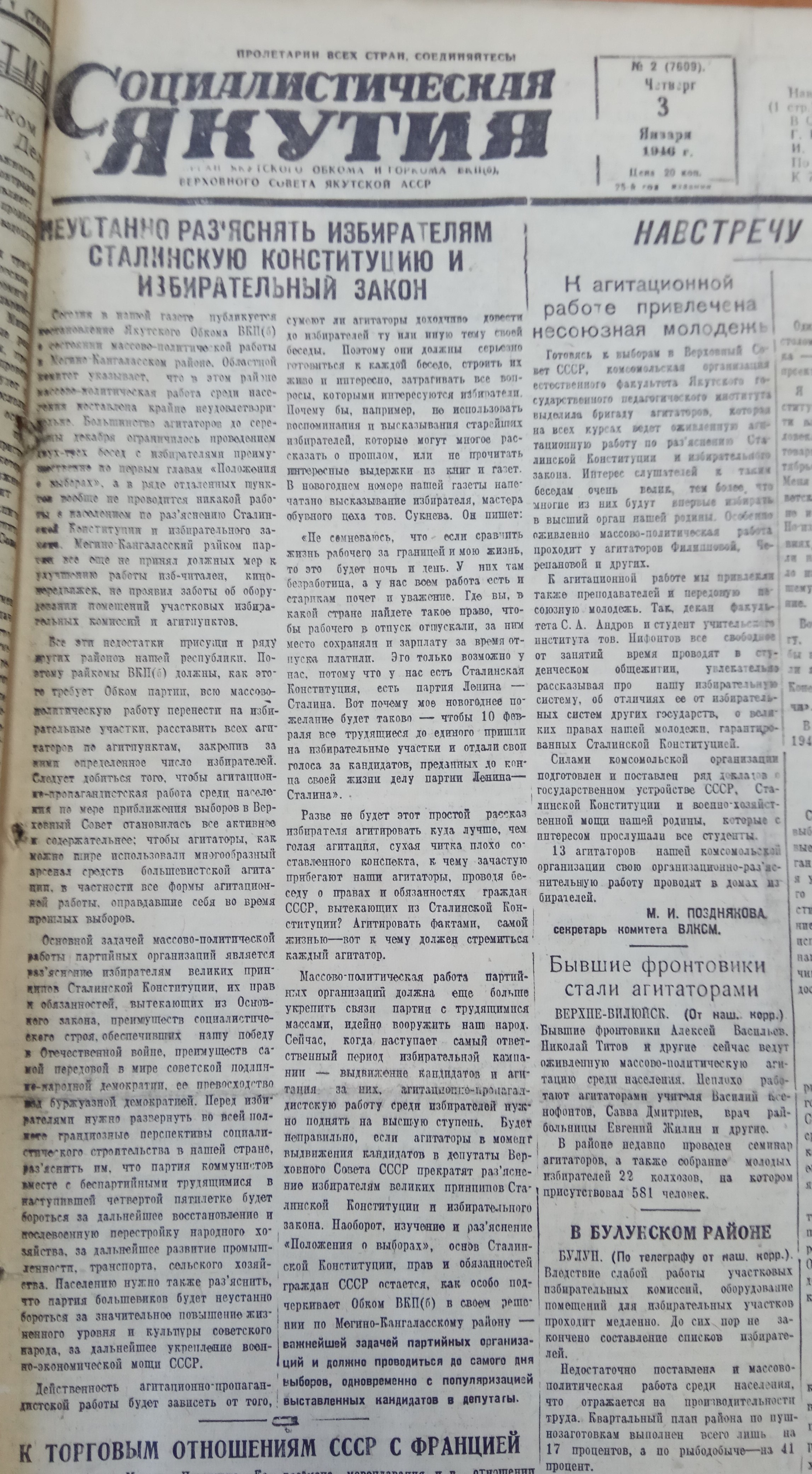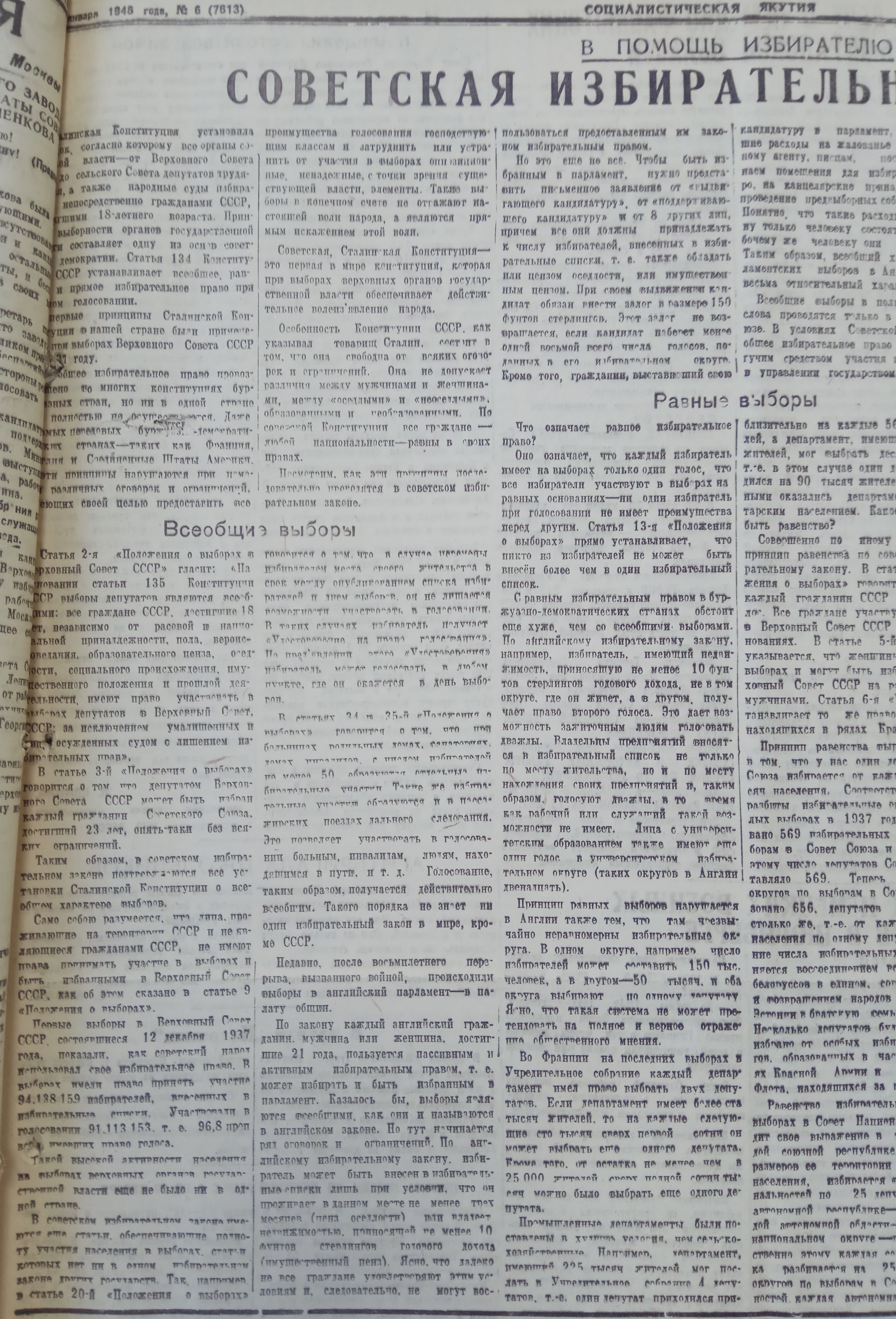 Неустанно разъяснять избирателям Сталинскую Конституцию и избирательный закон