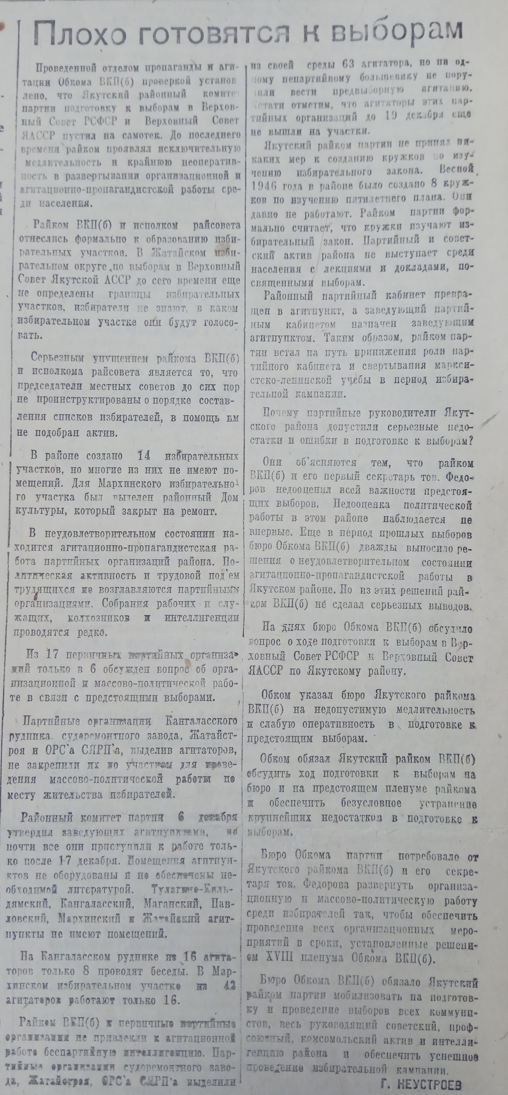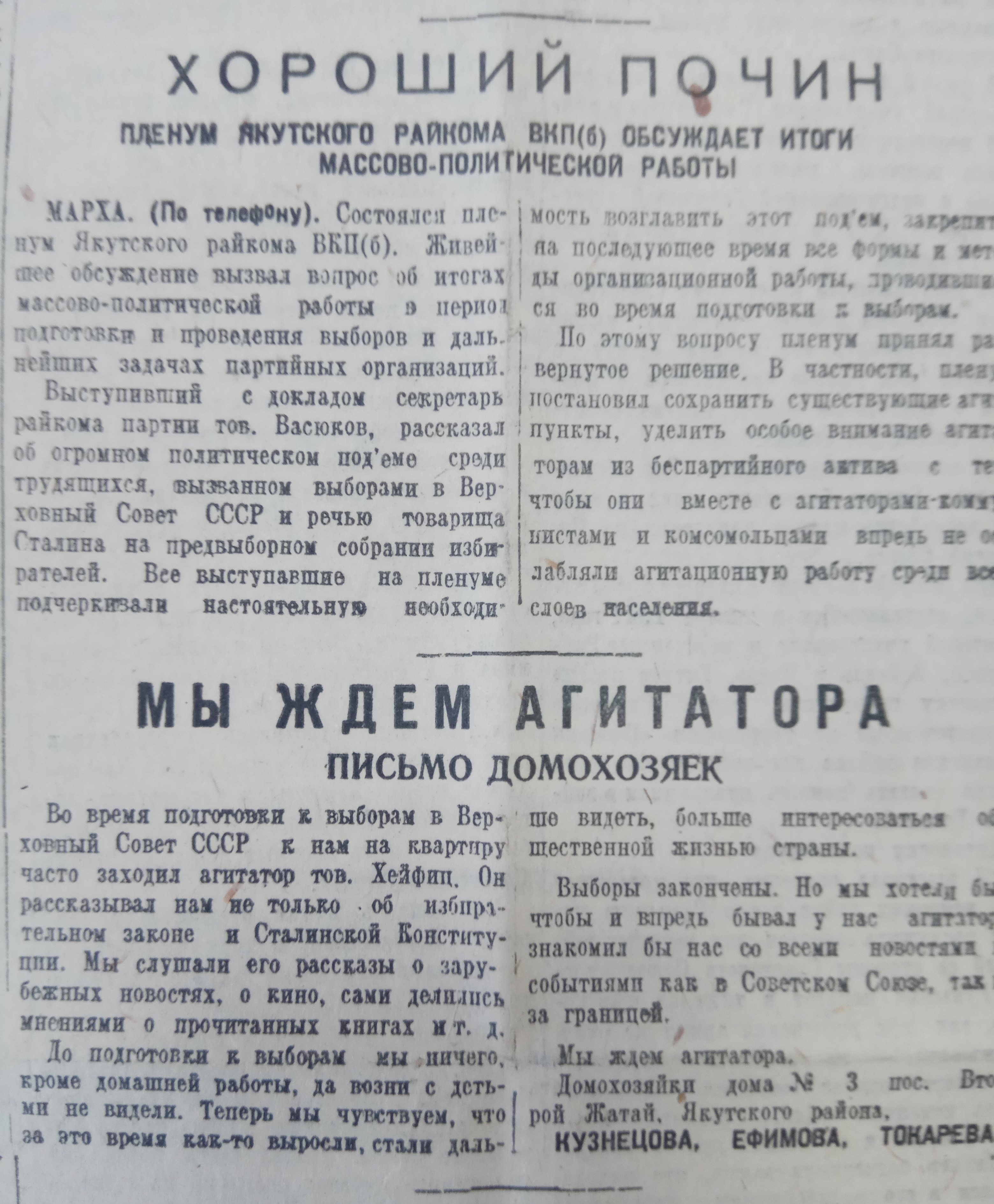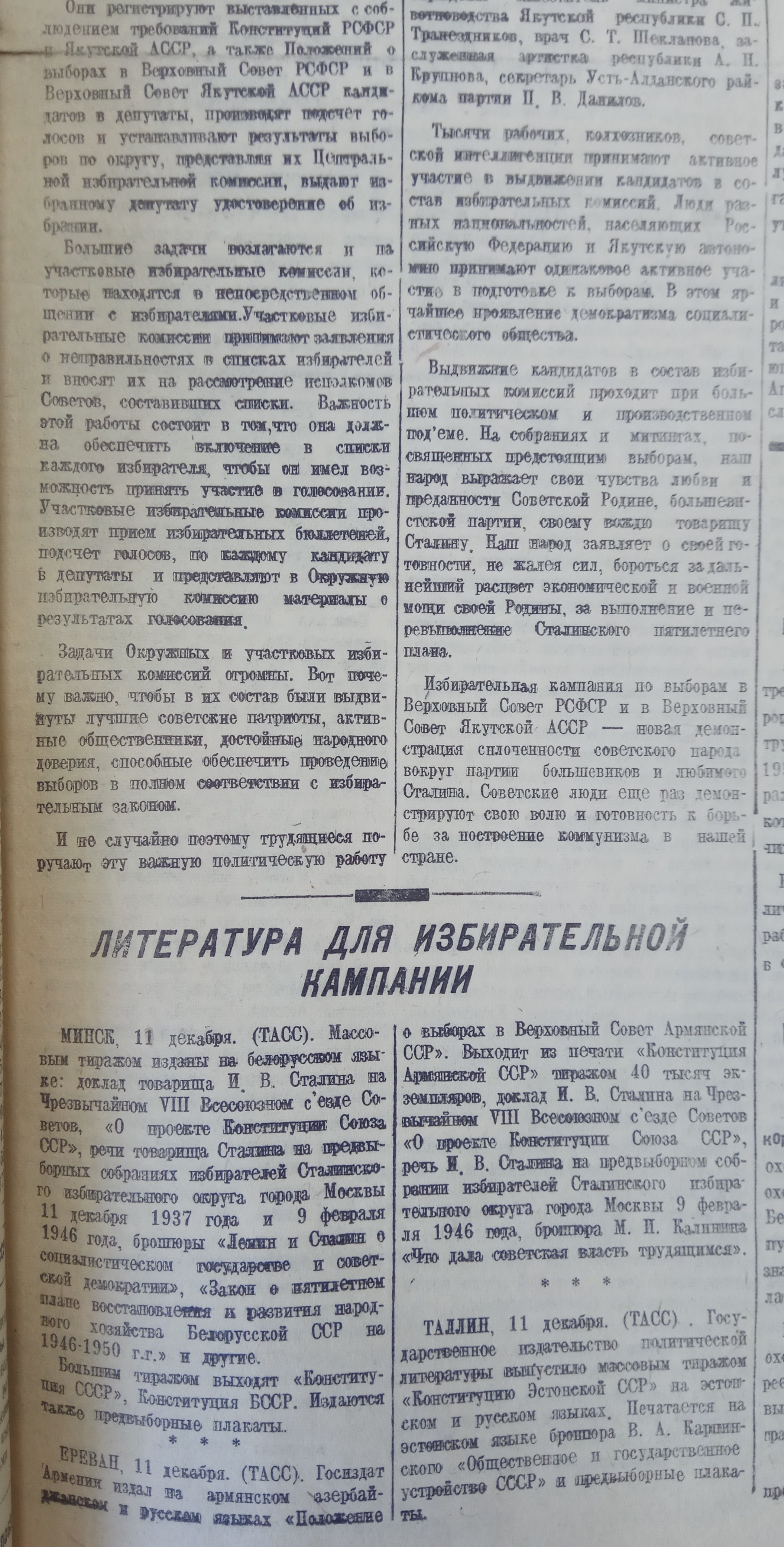 Неустанно разъяснять избирателям Сталинскую Конституцию и избирательный закон