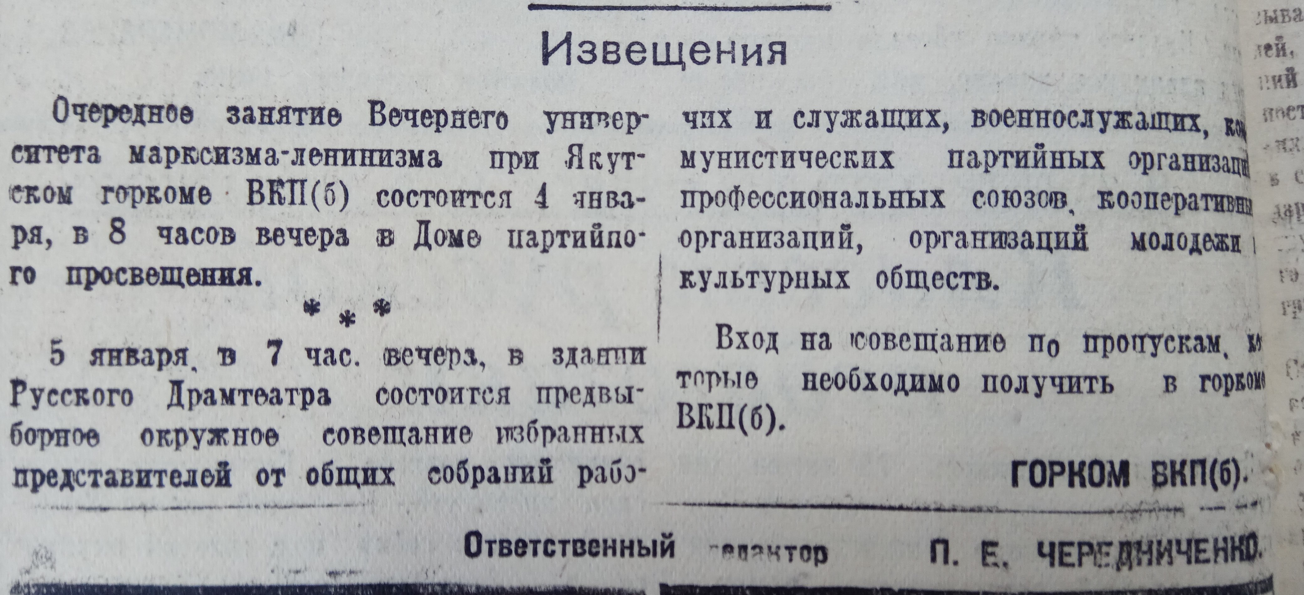 Извещение о занятии Вечернего университета марксизма-ленинизма