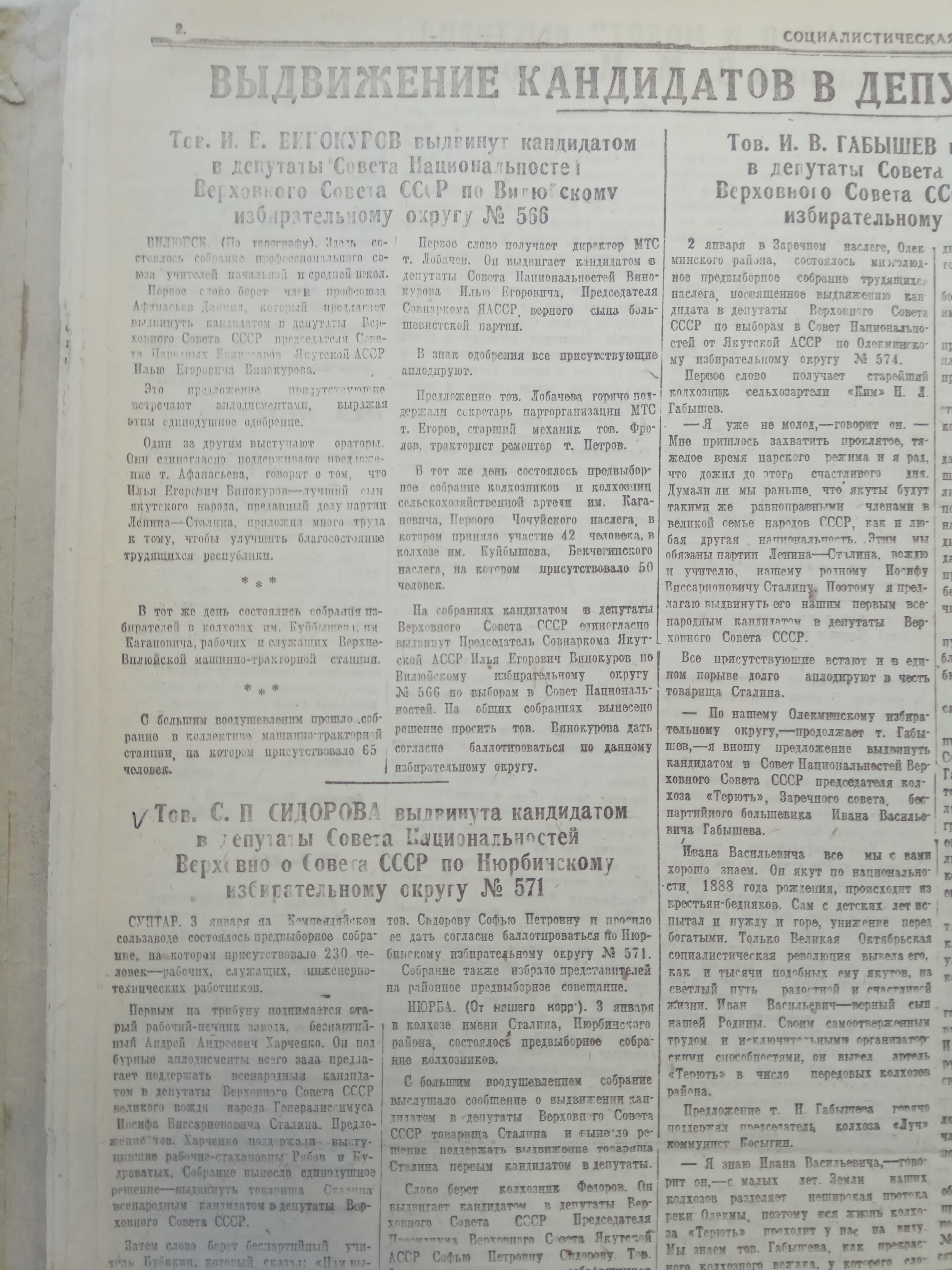 Выдвижение кандидатов в депутаты Верховного Совета СССР