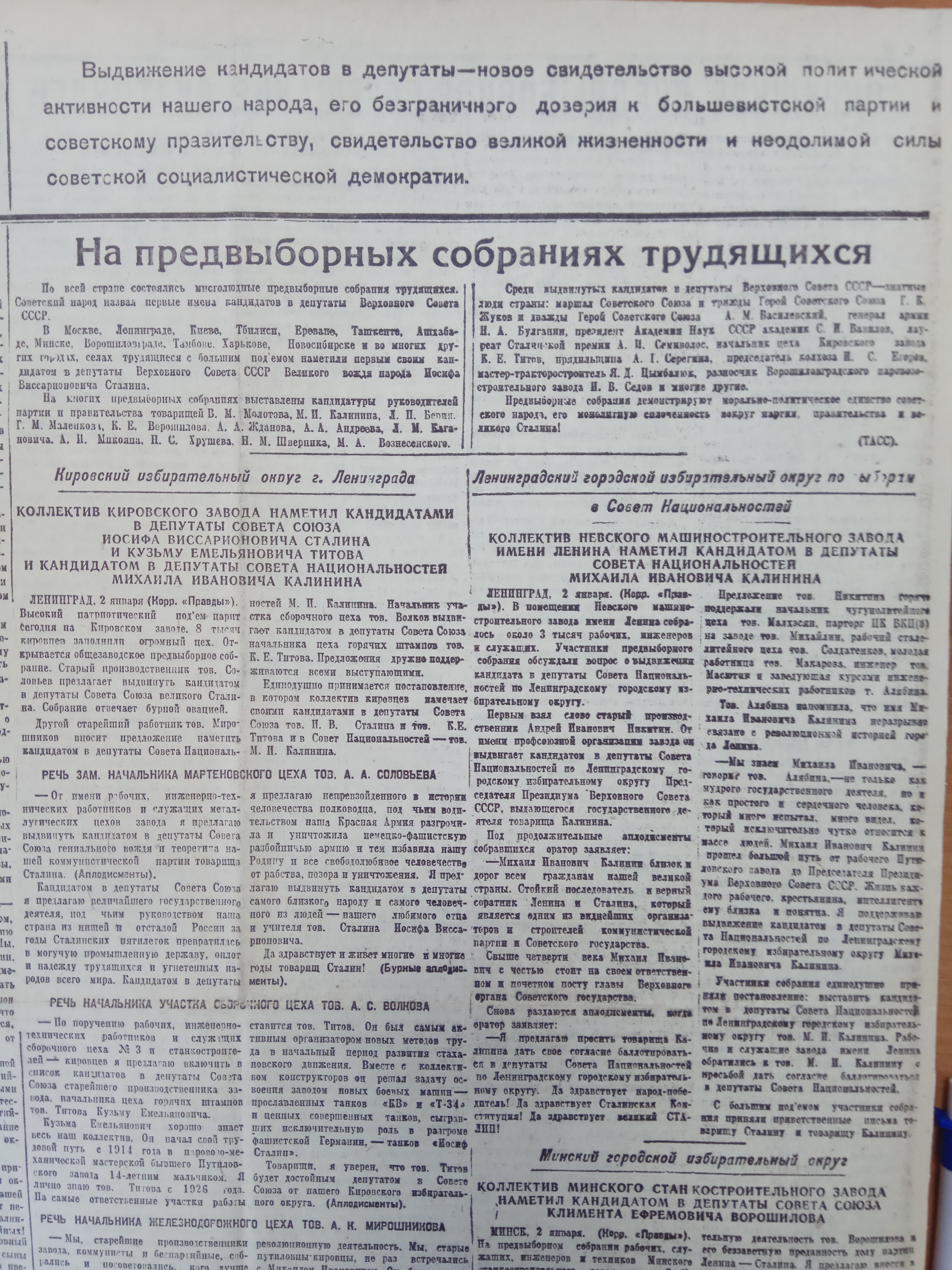 На предвыборынх собраниях трудящихся