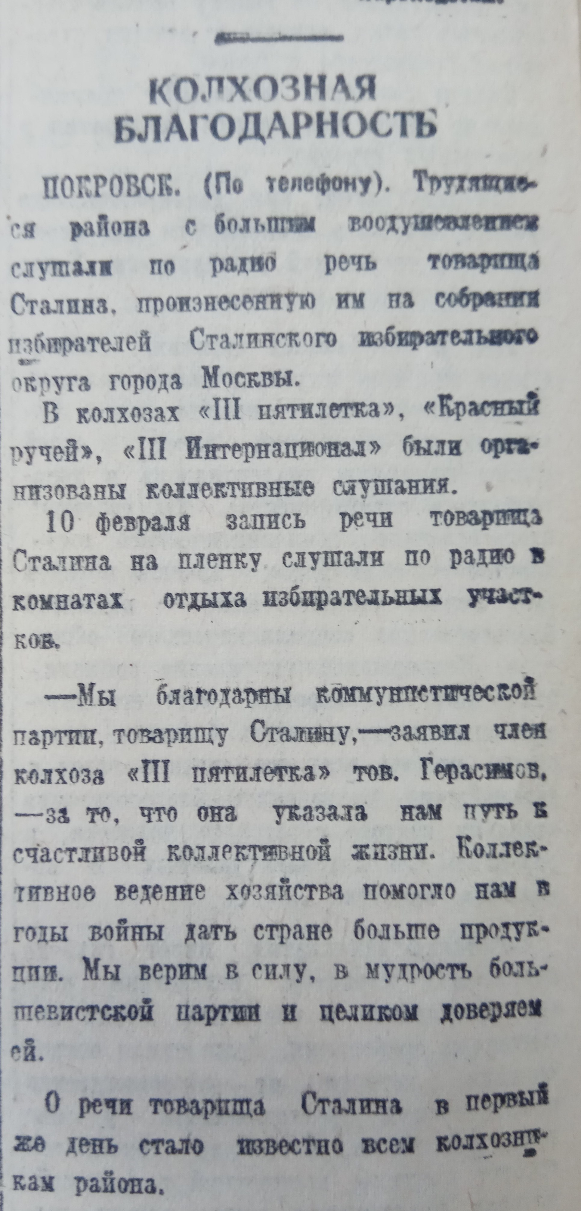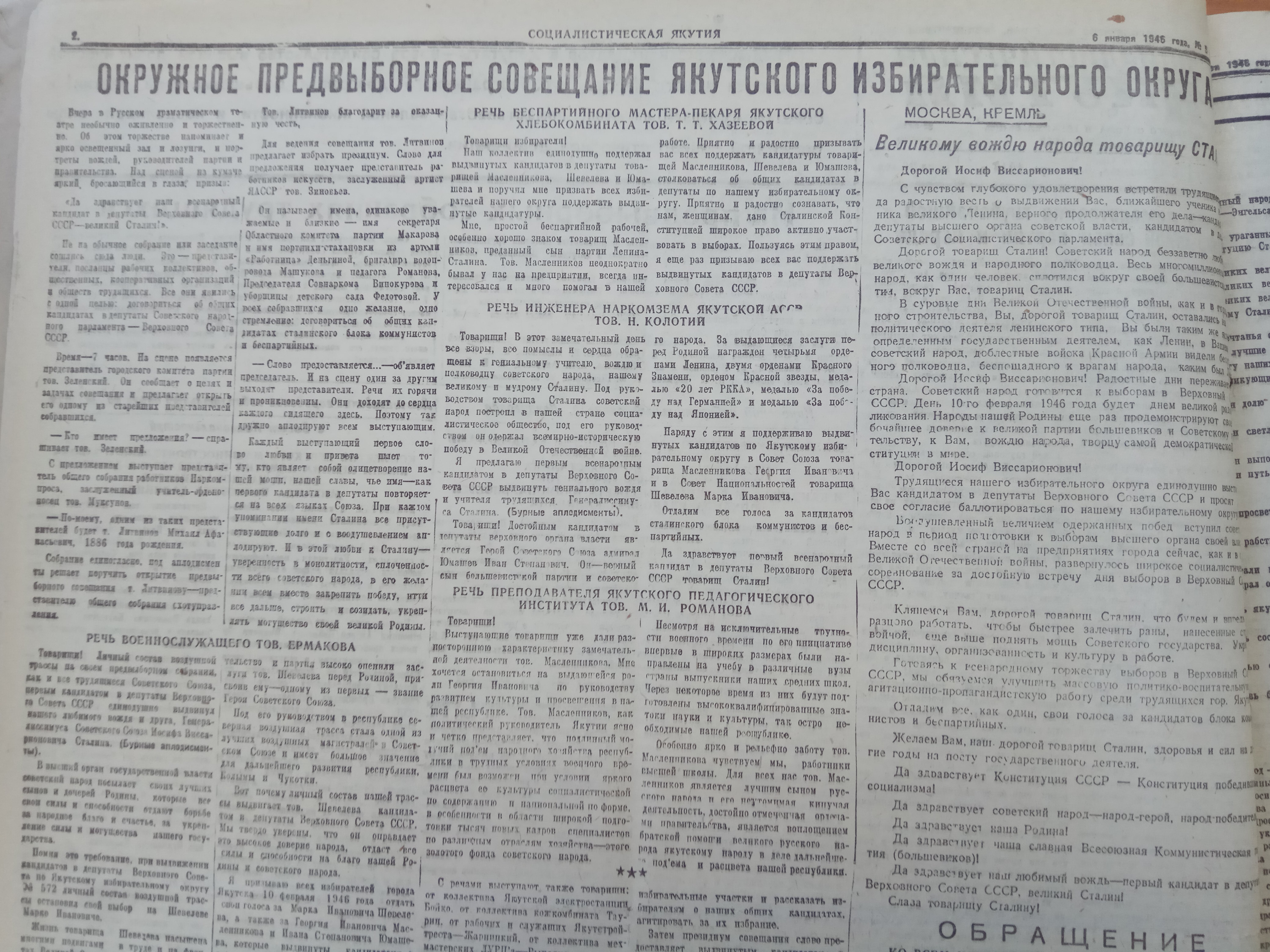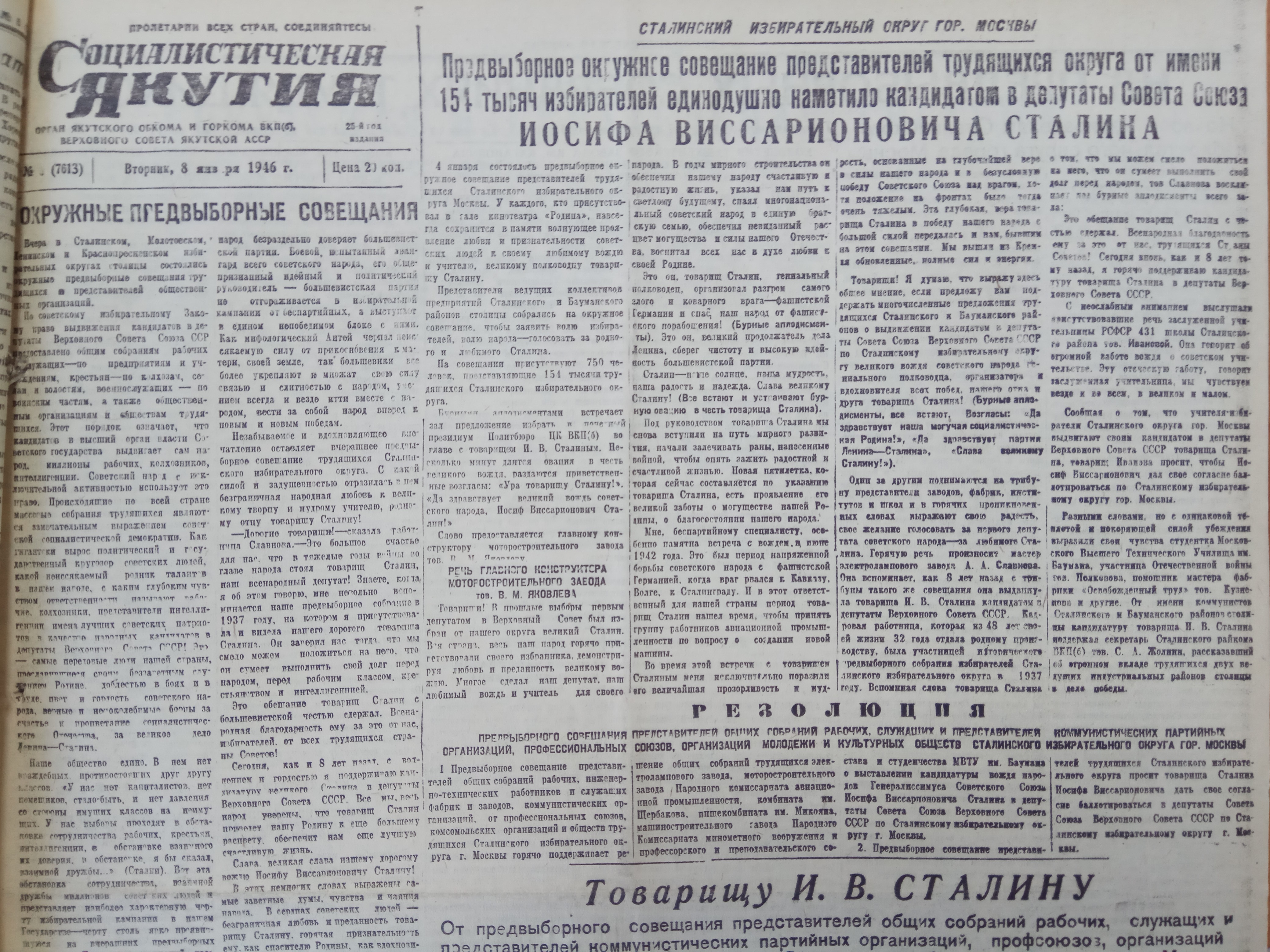 Товарищу И.В.Сталину от предвыборных совещаний