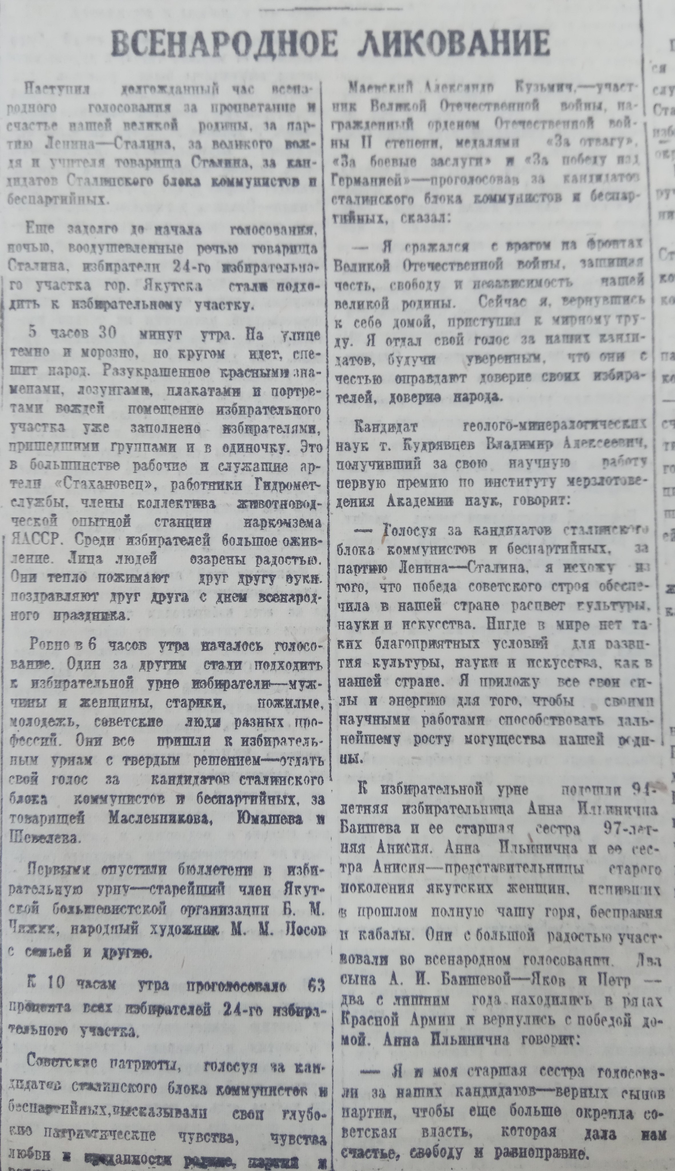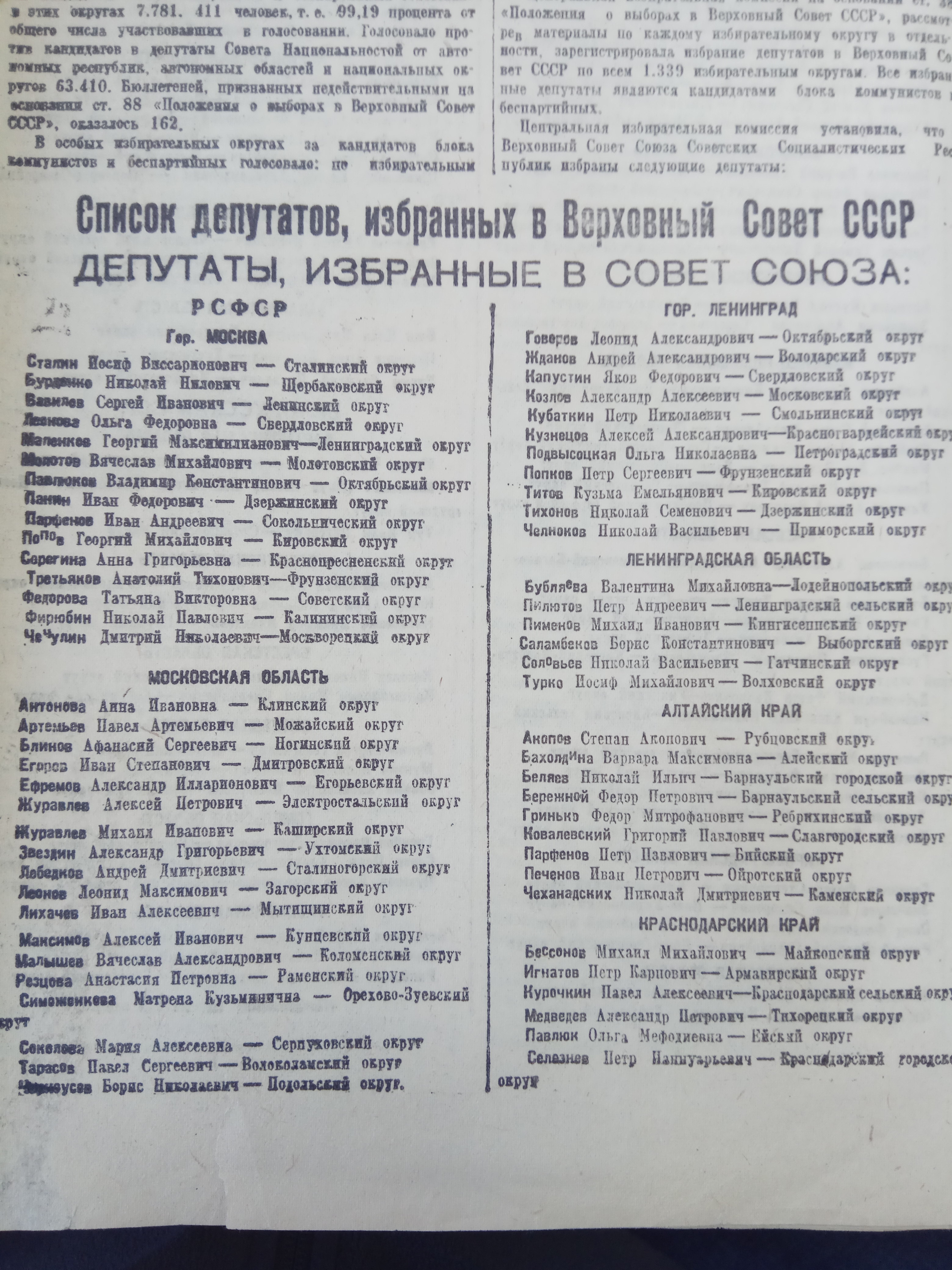 Товарищ Сталин наш всенародный депутат!