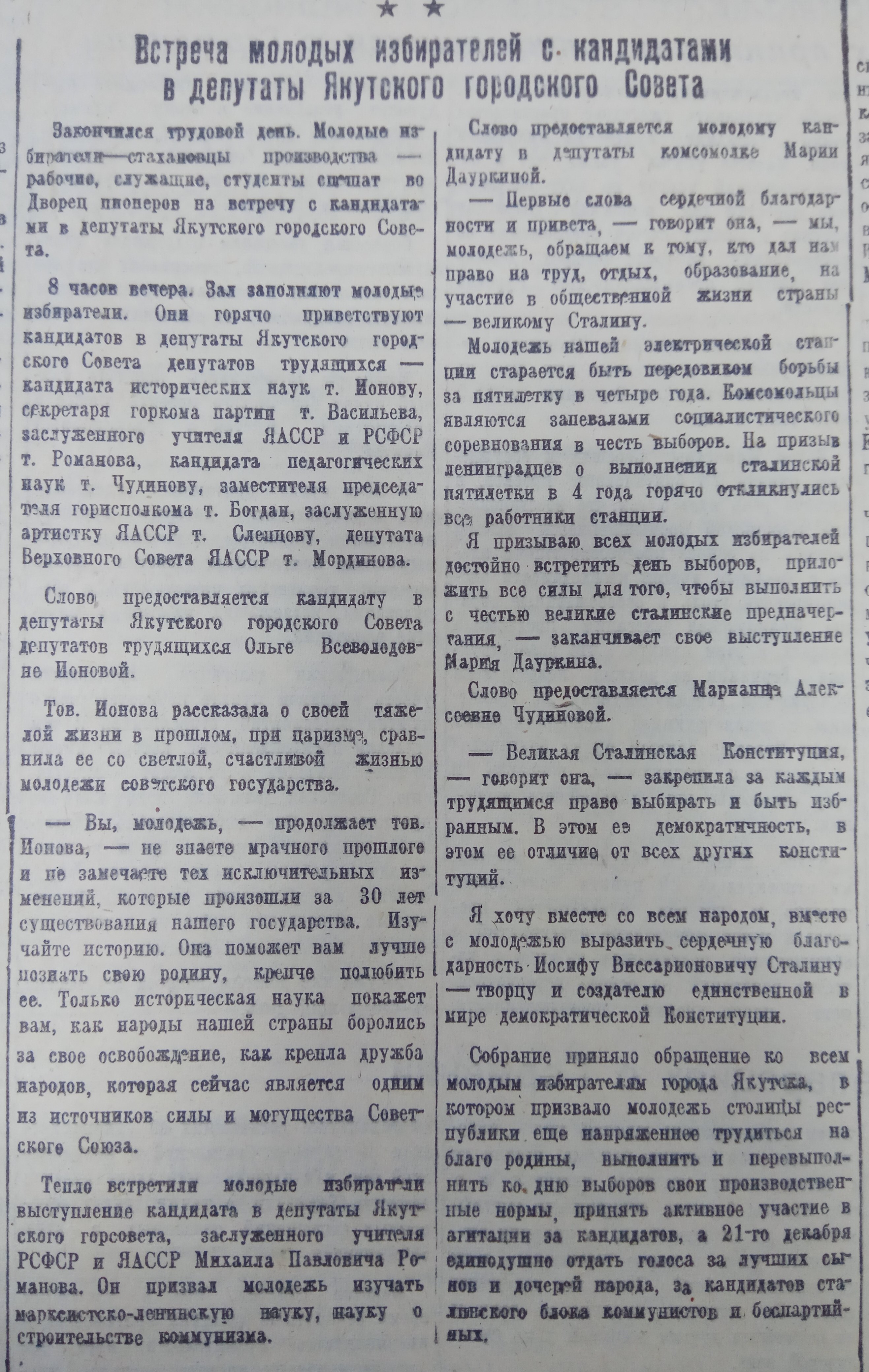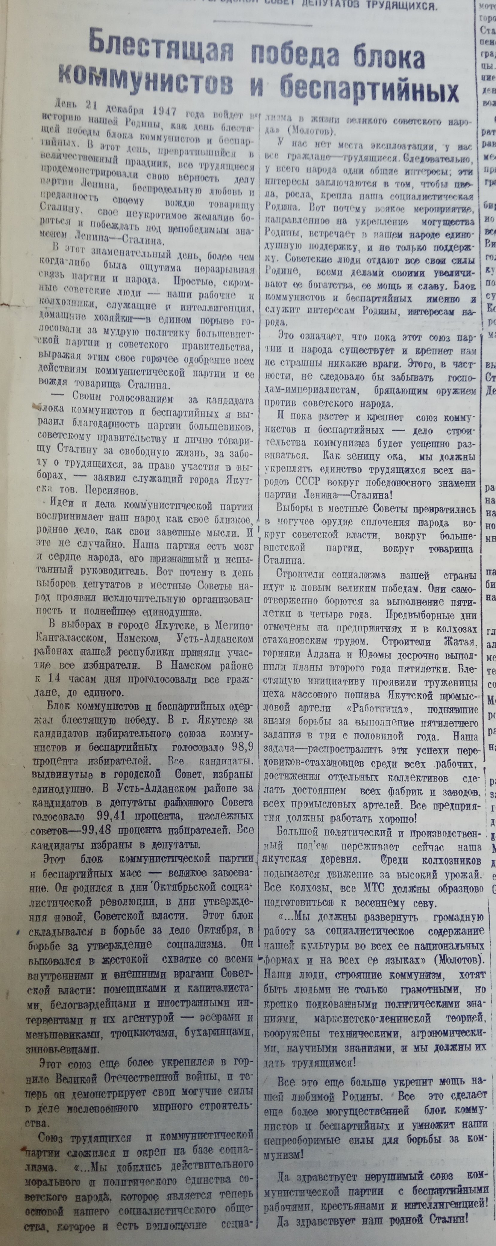 Выборы 9 февраля 1947 года. Материалы с газеты «Социалистическая Якутия»