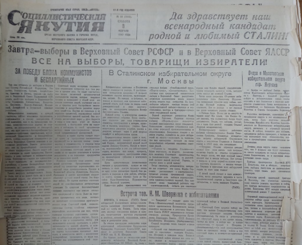 Выборы 9 февраля 1947 года. Материалы с газеты "Социалистическая Якутия"