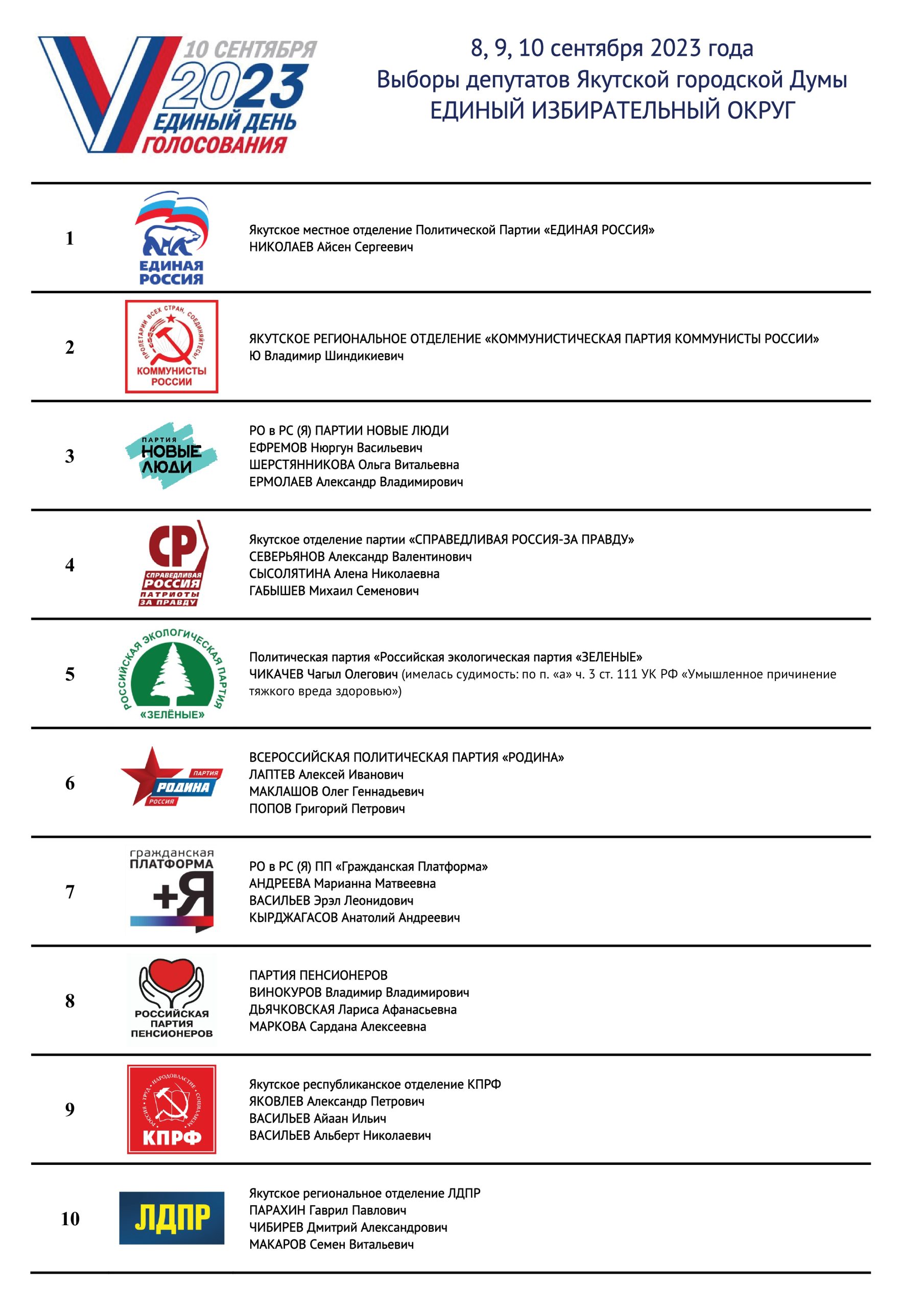 | Чикачев | Чагыл | Олегович | 16.03.1977 | Региональное отделение в Республике Саха (Якутия) Политической партии "Российская экологическая партия "ЗЕЛЕНЫЕ" | 0 | Общая часть списка | | | | | | | | | | | | | | | | | | | | | | | | | | | | | | | | | | | | | | | | | | | | | | | | | | | | | | | | | | | | | | | | | | | | | | | | | | | | | | | | | | | | | | | | | | | | | | | | | | | | | | | | | | | | | | | | | | | | | | | | | | | | | | | | | | | | | | | | | | | | | | | | | | | | |