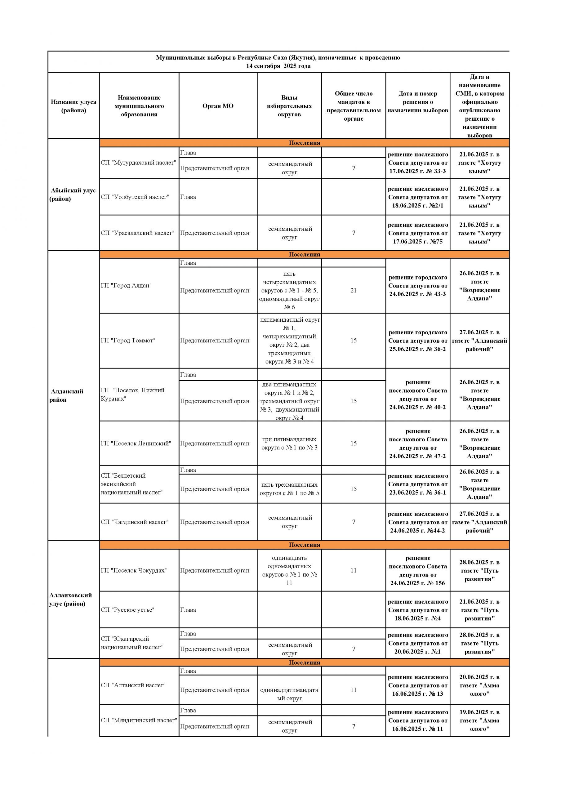 На территориях городских округов «город Якутск» и «Жатай» в Единый день голосования 14 сентября 2025 никаких выборов не планируется.